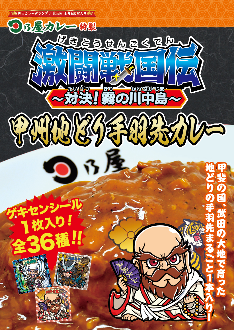 神田一は天下一!第3回神田カレーグランプリ優勝&殿堂入りを果たした名店、日乃屋カレー。激闘戦国伝とコラボし、ご当地名物を使ったカレーを開発。いままさに、カレー戦国時代の雄として、激闘戦国伝コラボカレーいざ出陣!