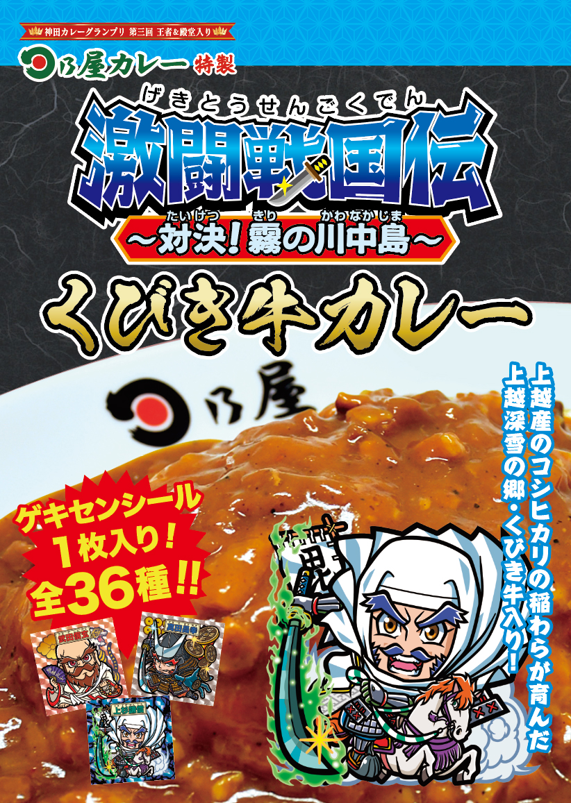 神田一は天下一!第3回神田カレーグランプリ優勝&殿堂入りを果たした名店、日乃屋カレー。激闘戦国伝とコラボし、ご当地名物を使ったカレーを開発。いままさに、カレー戦国時代の雄として、激闘戦国伝コラボカレーいざ出陣!